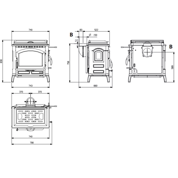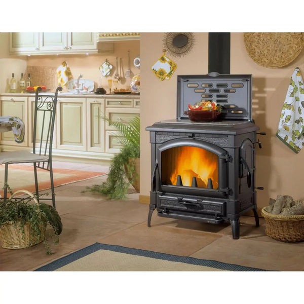 Poêle à bois avec chauffe plat Isotta con cerchi.16 - 11,9 Kw